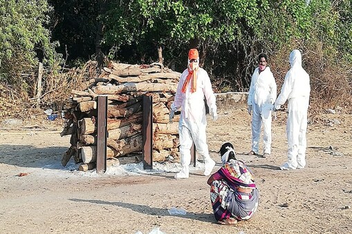 కోవిడ్ మృత దేహానికి అంత్యక్రియలు నిర్వహిస్తున్న యువకులు